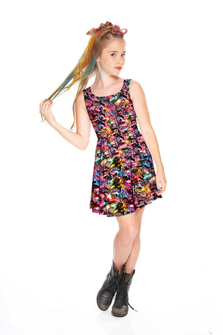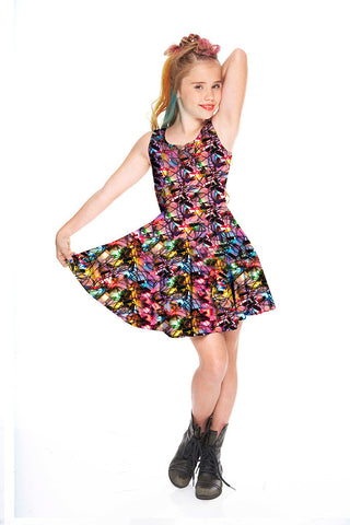 Girls Multi Holiday Lights Skater Dress