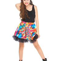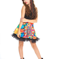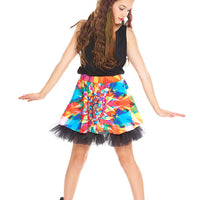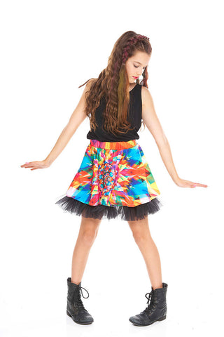 Get your dance on in our punk chic Kaleidoscope Tutu Dress! These bright fun colors paired with this edgy black tulle is just the right juxtaposition to satisfy almost any type of dresser. Made in the USA