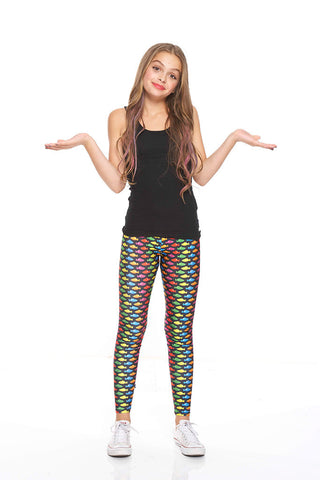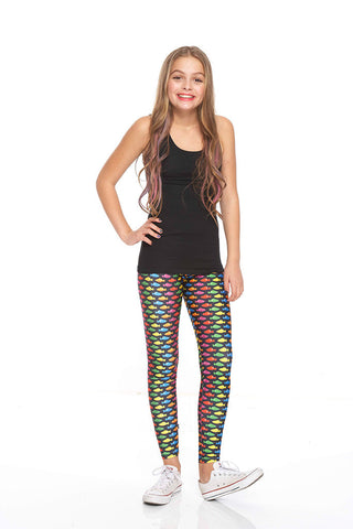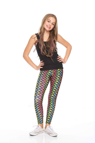 Erring on the conservative side (which says a lot for us), our Candy Crush Fishies Leggings have a black base with a colorful pop of little fishies throughout! What could be better than to have our very favorite booster, the fish, form lines right across your candied legs? Made in the USA.