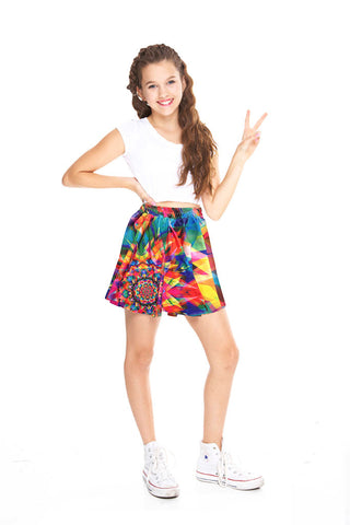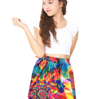 You will be the center of attention in this Kaleidoscope Skater Skirt.  Everyone will be mesmerized by the vibrant and colorful print.  Prepare to have all eyes on you… and your skirt!