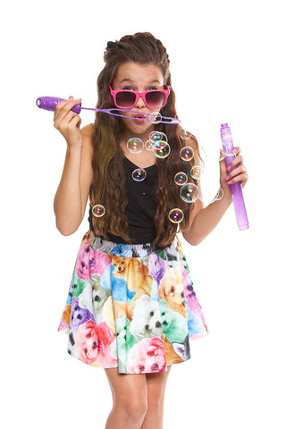 This Puppies Skater Skirt is puppy perfection. Honestly, what could be more perfect than a comfy, flowy skirt with colorful puppies on it? These pups are so cute and life-like, you might find yourself begging mom to take one home - and now you can!