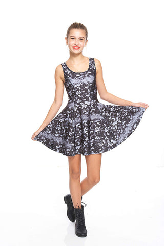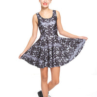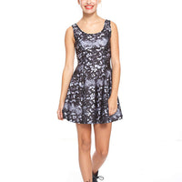 Light up the room! Our Black Sequins Skater Dress is pretty ready to shine. The flared spandex dress is sprayed with fun and fancy black sequins because it's your party. Made in the USA