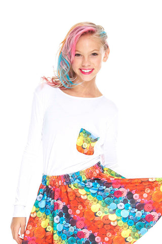 Girls Buttons Long Sleeve Pocket T-Shirt