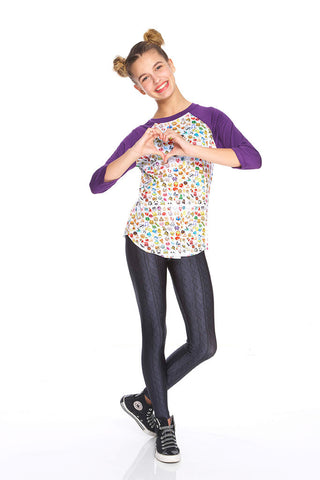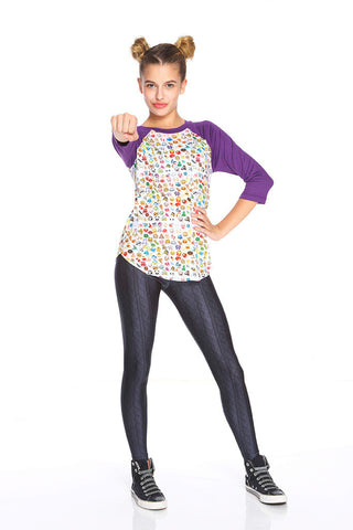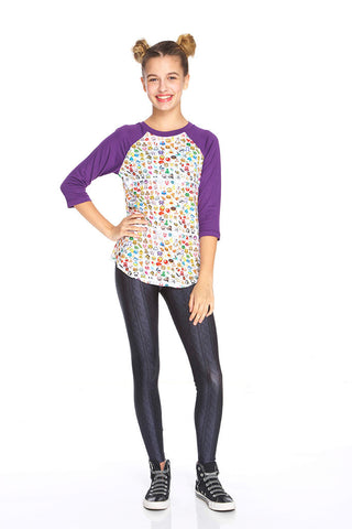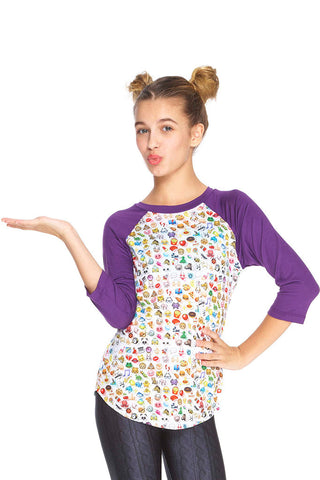 Girls Emoji 2.0 3/4 Sleeve Baseball T-Shirt