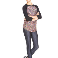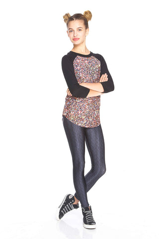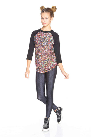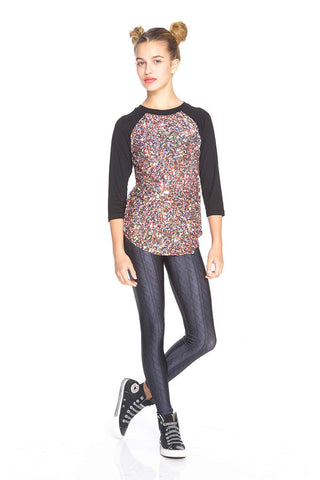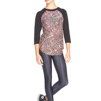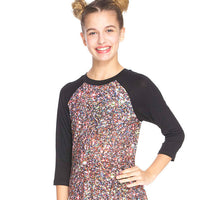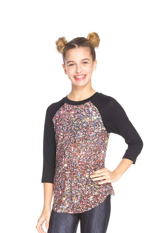 Girls Multi Glitter 3/4 Sleeve Baseball T-Shirt