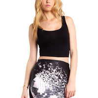 This psychedelic Disco Ball Tight Skirt throws it back to the ‘70s. This skirt is black with a big ol’ shiny, silver disco ball that says "I've come to boogie." Can you dig it man? Made in the USA.