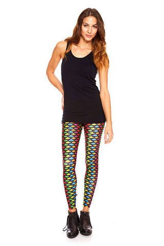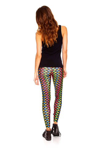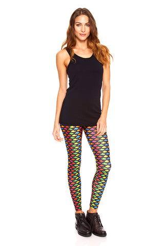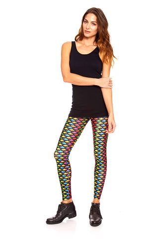 Erring on the conservative side (which says a lot for us), our Candy Crush Fishies Leggings have a black base with a colorful pop of little fishies throughout! What could be better than to have our very favorite booster, the fish, form lines right across your candied legs? Made in the USA.