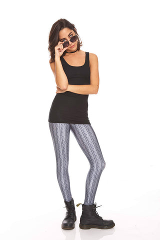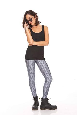 It looks like a sweater for your legs but it’s really our Gray Cable Knit Leggings. Classic, cool and ready for winter.  Made in the USA
