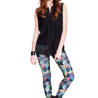 These Iridescent Triangle Leggings look like an oil painting from the future. These multi-colored, iridescent triangles will take you to another dimension and beyond.