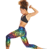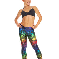 RAAAR in our Rainbow Tiger Performance Capri Leggings. Your inner animal will surface when you're working out in these babies. People won't be able to help but claw at you. Made in the USA