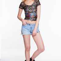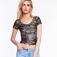 The über stylish emoji crop top is the sister garment to our emoji leggings. Perfect for every occasion; especially with a pair of ripped denims.
