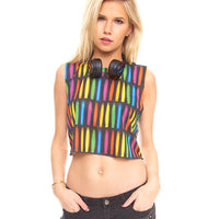This Glow Sticks crop muscle tank top is perfect for your nights out on the town and on the dance floor. Glows Sticks are a raver's best friend and now this rad shirt can be too. This tank is neon, EDM, and music festival friendly so make sure to put it to good use.
